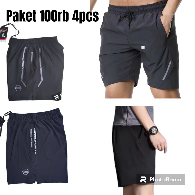 Paket 100rb dapat 4pcs celana running pria gym parasut micro lentur hitam