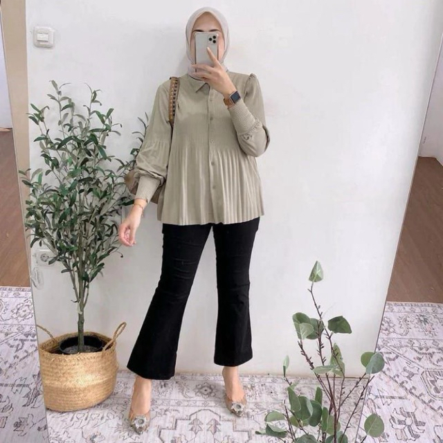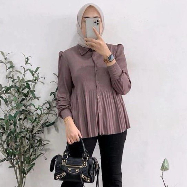 Atasan wanita Terbaru Kemeja Plisket Tisya Blouse Kekinian