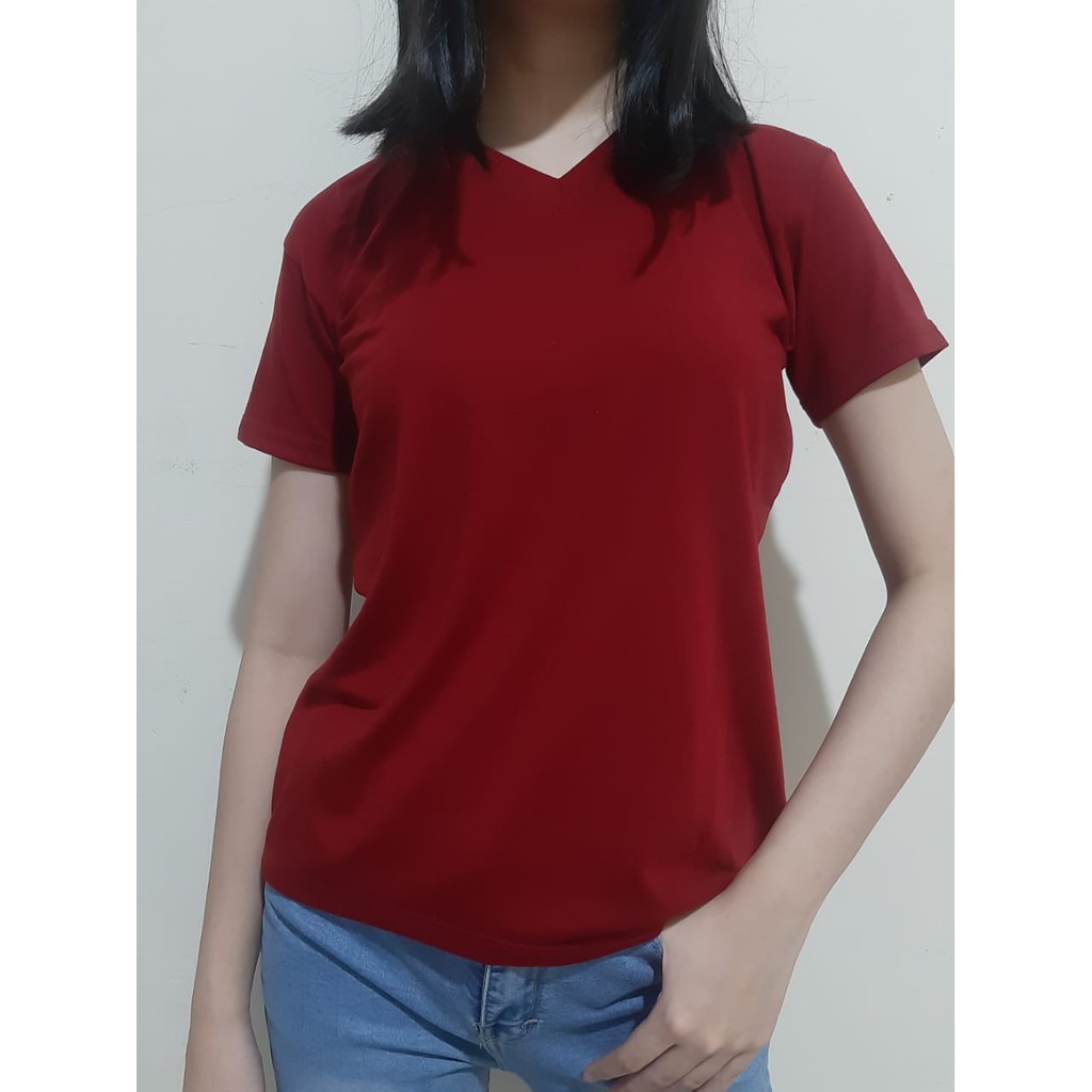 Kaos Polos V-Neck Cewe Bahan Premium Nyaman