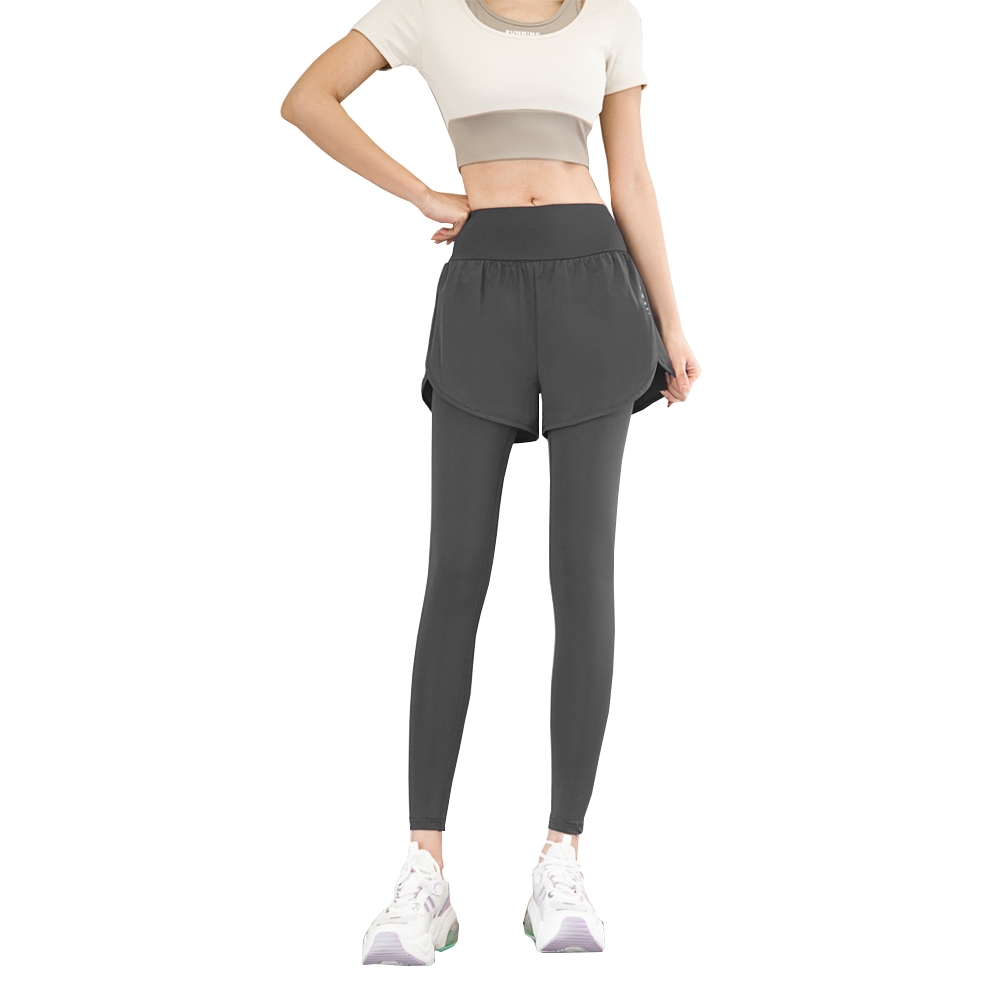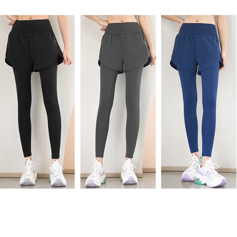 Tonion Celana 2 in 1 Olahraga Legging Wanita Pakaian High Waist Polos Bersepeda Yoga Running Sport Fitness