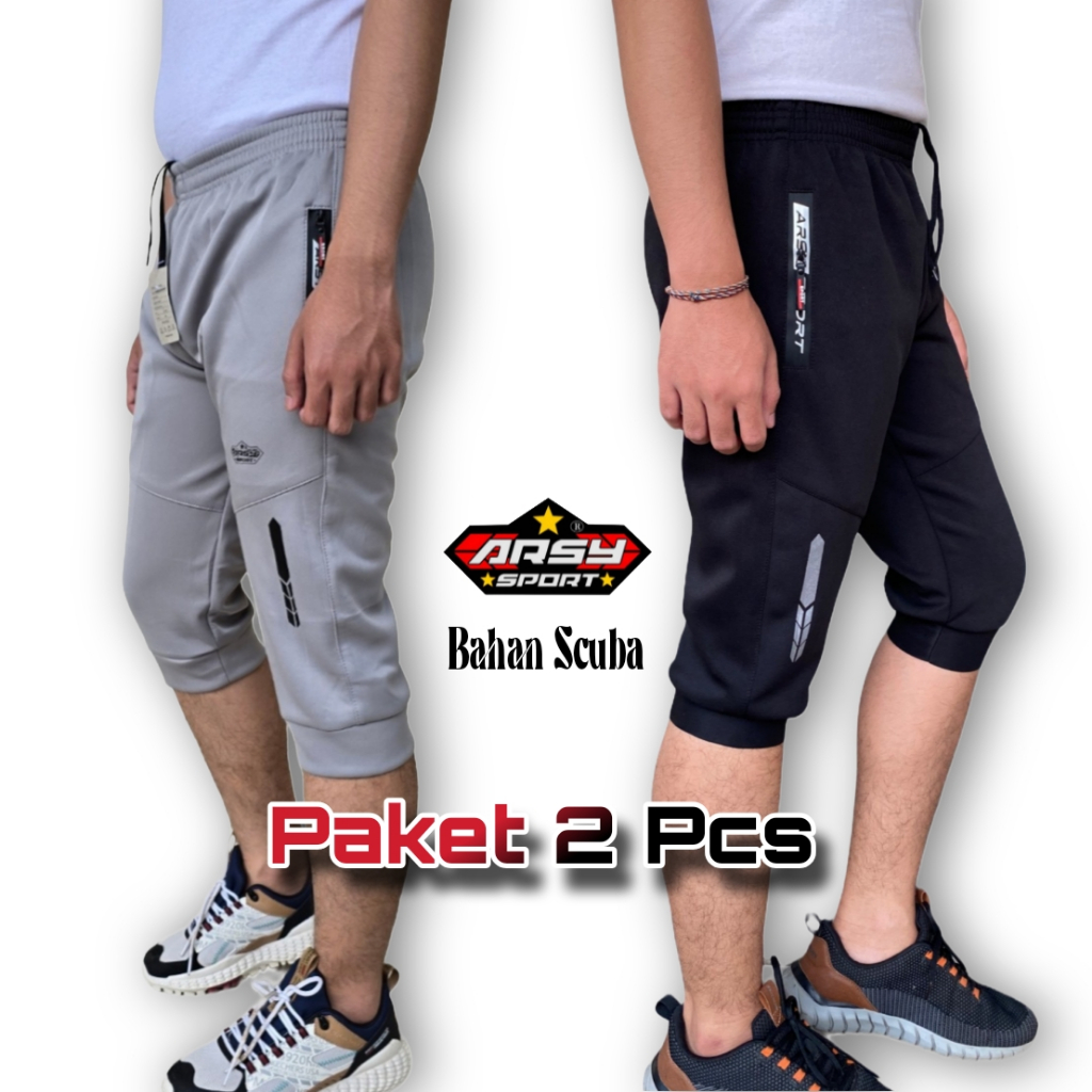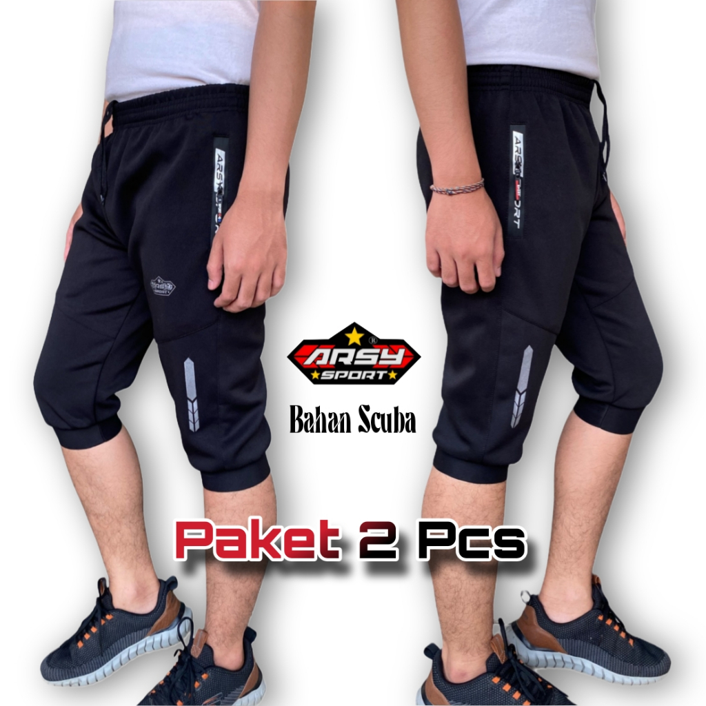 Arsy Sport - Paket 2 Pcs Celana Running Pria Wanita - Celana Sontog 3/4 Fitnes Gym Scuba Elastis S01