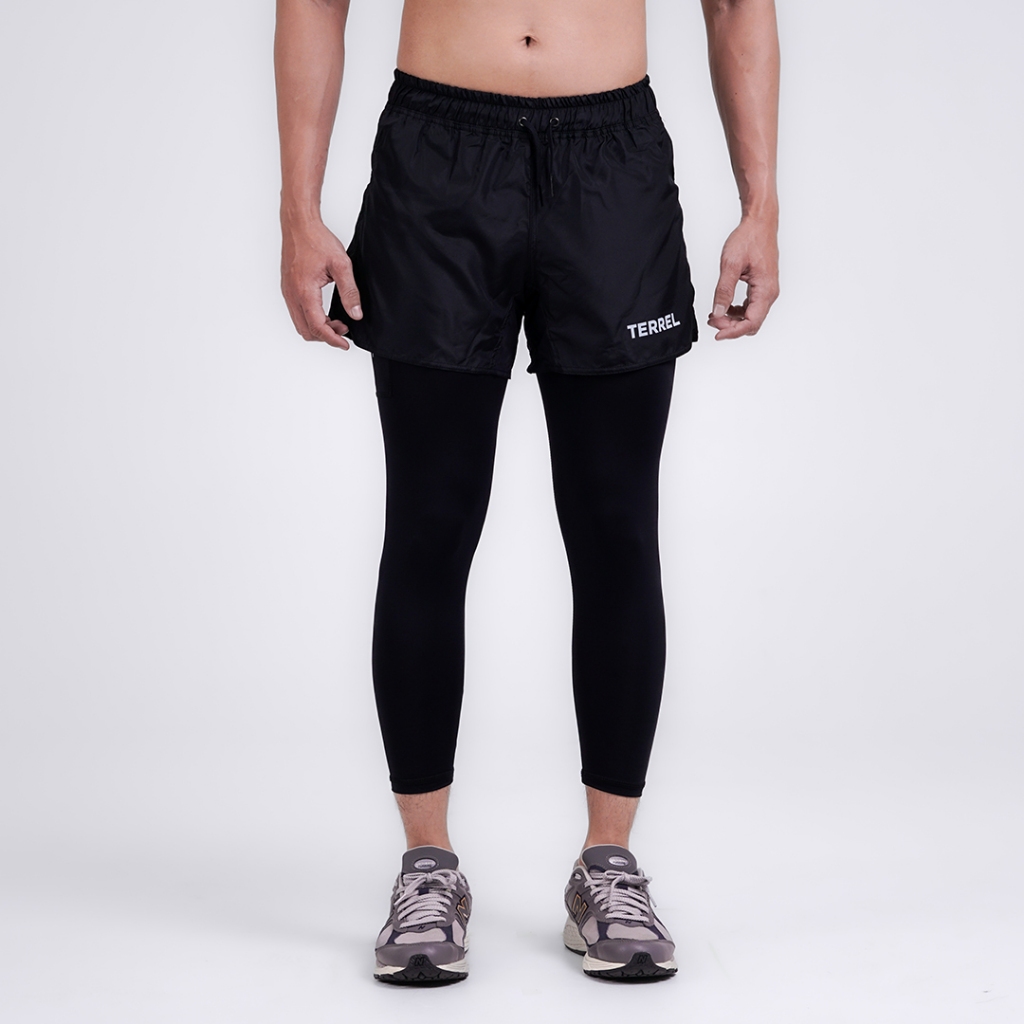 Terrel sportswear Compression Short Active Black Celana olahraga panjang gym running lari pria