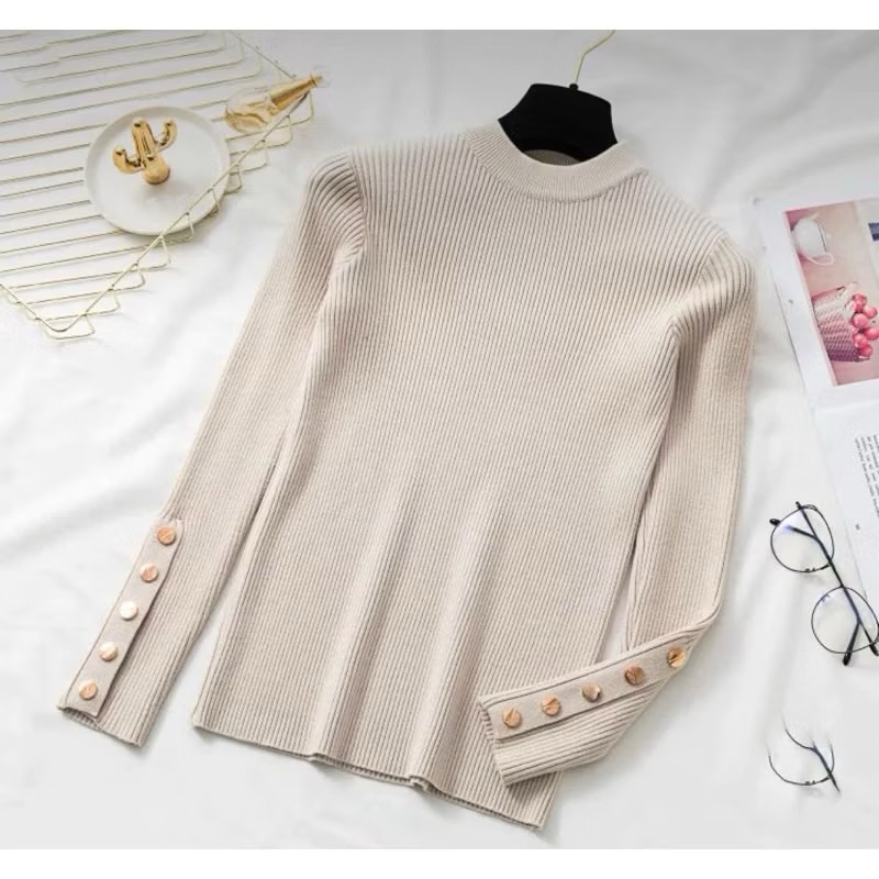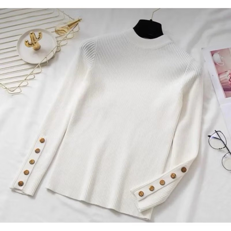 Inara Blouse Rajut Kancing 4 Atasan Baju Wanita Korean Style Press Body