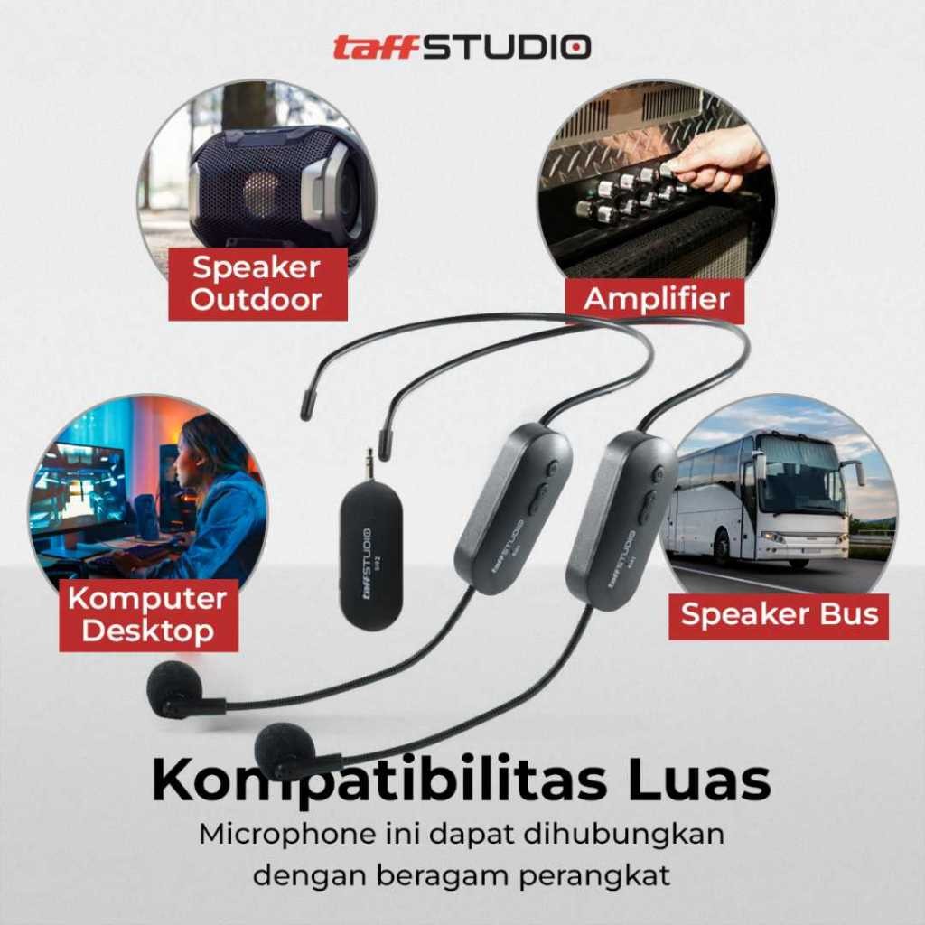 SERBA TAFFSTUDIO MICROPHONE WIRELESS MIK BANDO IMAM MESJID TAMPA KABEL 2.4G HEADSET 2 PCS SI02