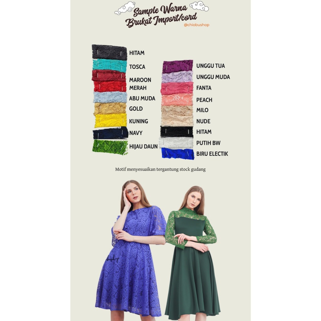 Chiobushop - (Adelli) Gaun Wanita Brukat Elegan Simple Casual Prewedding Wedding Pesta Kondangan