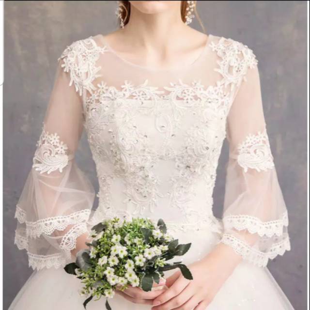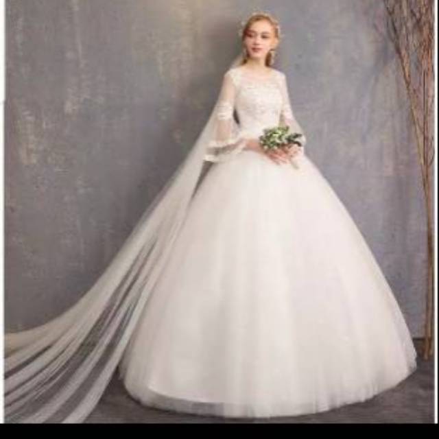 Gaun pengantin putih /wedding Dress lengan panjang lengan terompet .