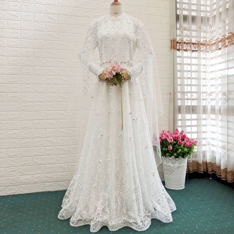 Gaun pengantin / Gaun akad / gaun muslimah / gaun pernikahan / gaun jumbo / gaun kecil
