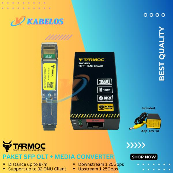 PAKET TARMOC SFP GPON OLT STICK + MEDIA CONVERTER 1 SFP 1 LAN GIGABIT POE IN 9-57V | SFP-OLT-GPON32-1G + TMC-1S1G-P-V1