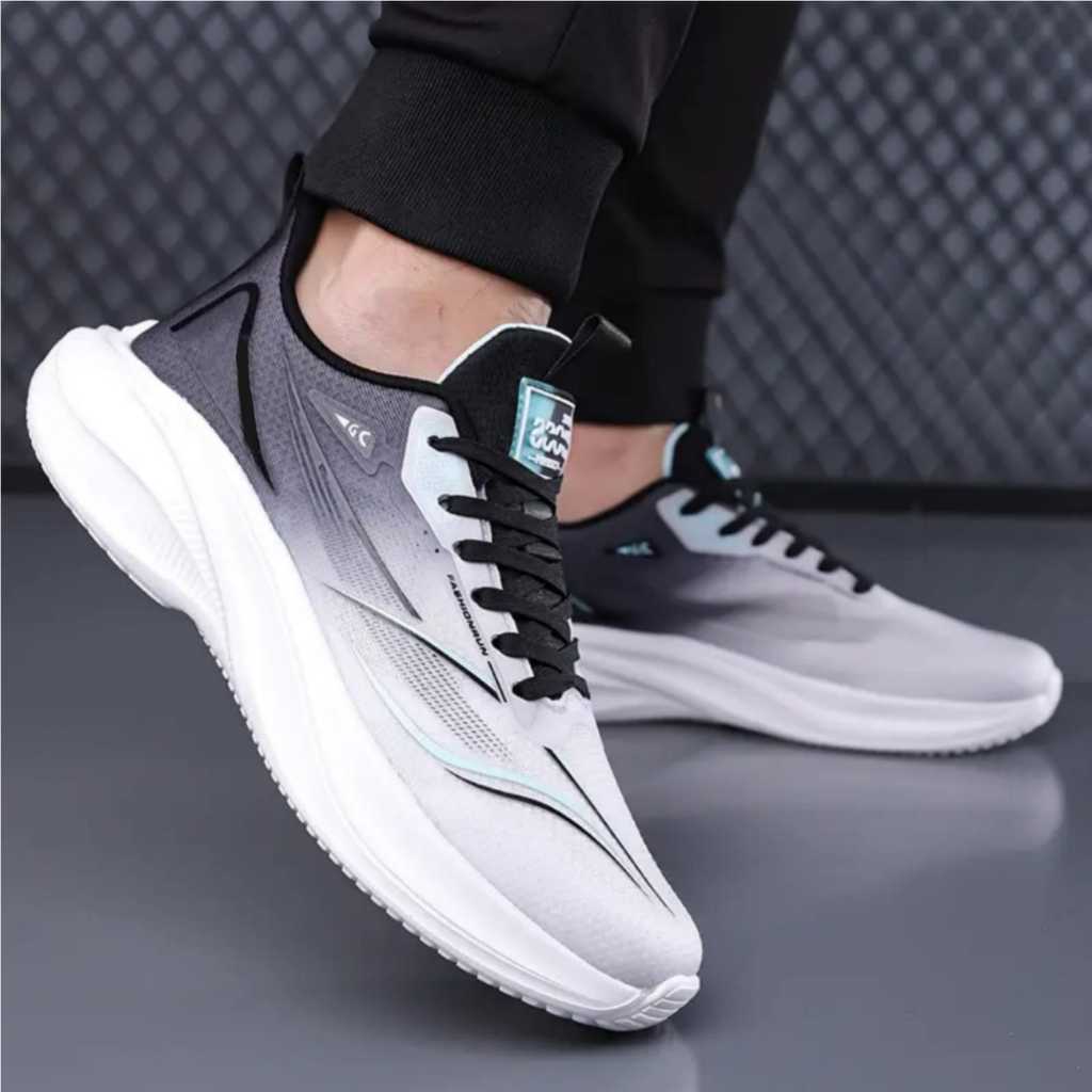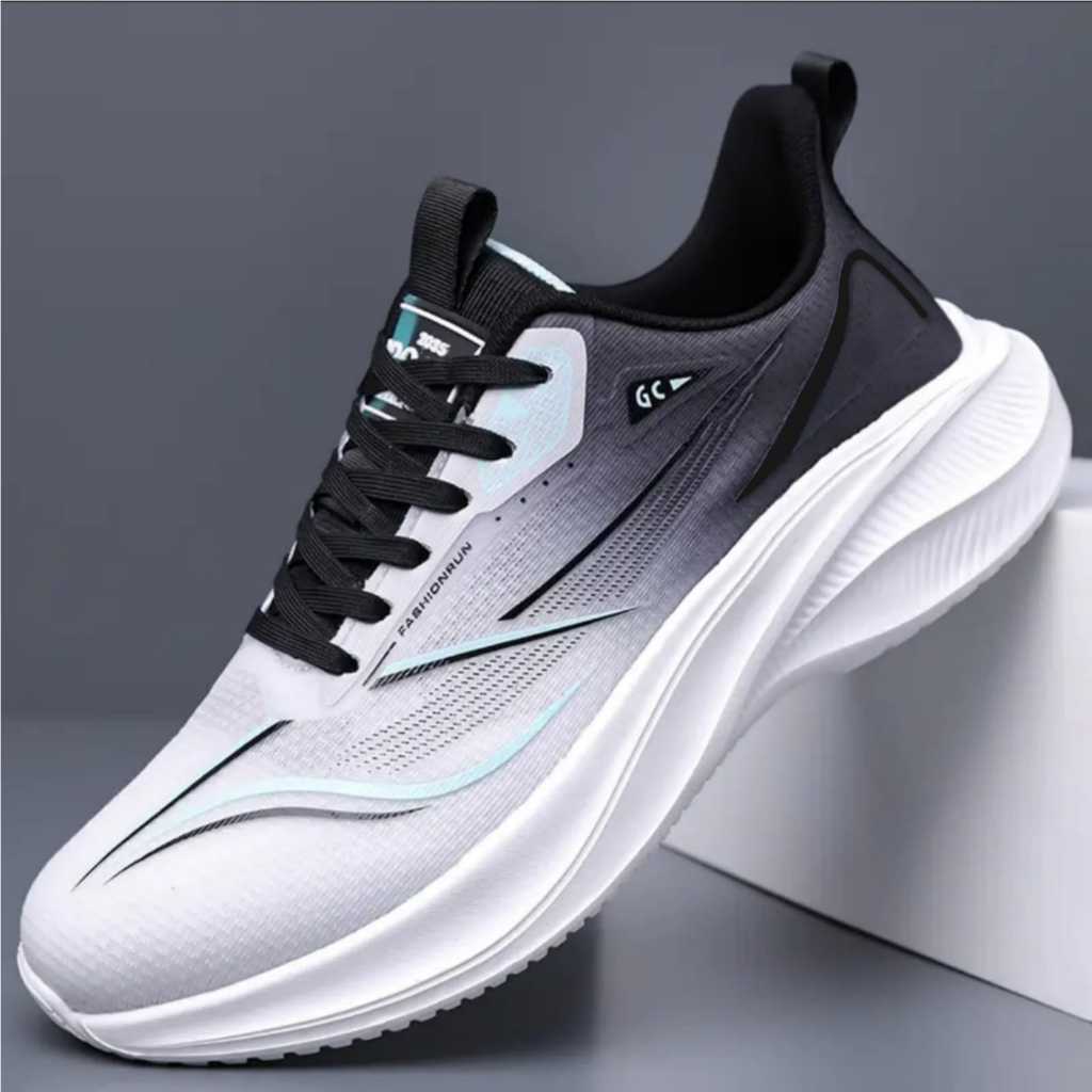 Sepatu Lari Pria RU-1 Breathable Fashion Sporty Hitam Orange