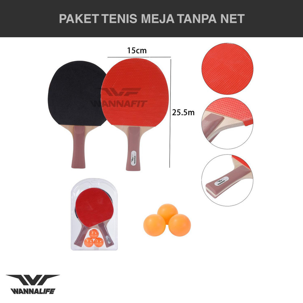 WANNALIFE Paket Bet / Bat Tenis Meja | Raket Pingpong / Ping Pong Bola Net Tas | Alat Olahraga