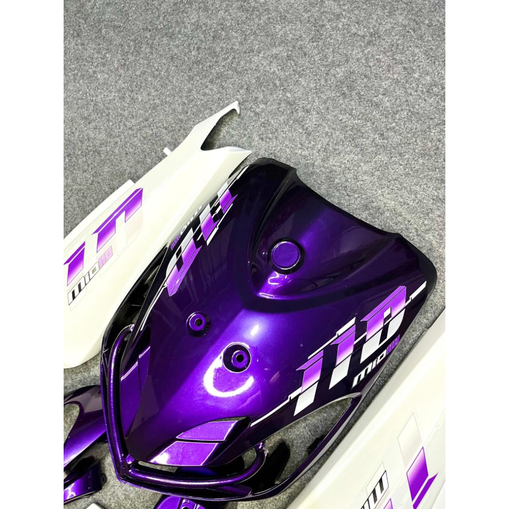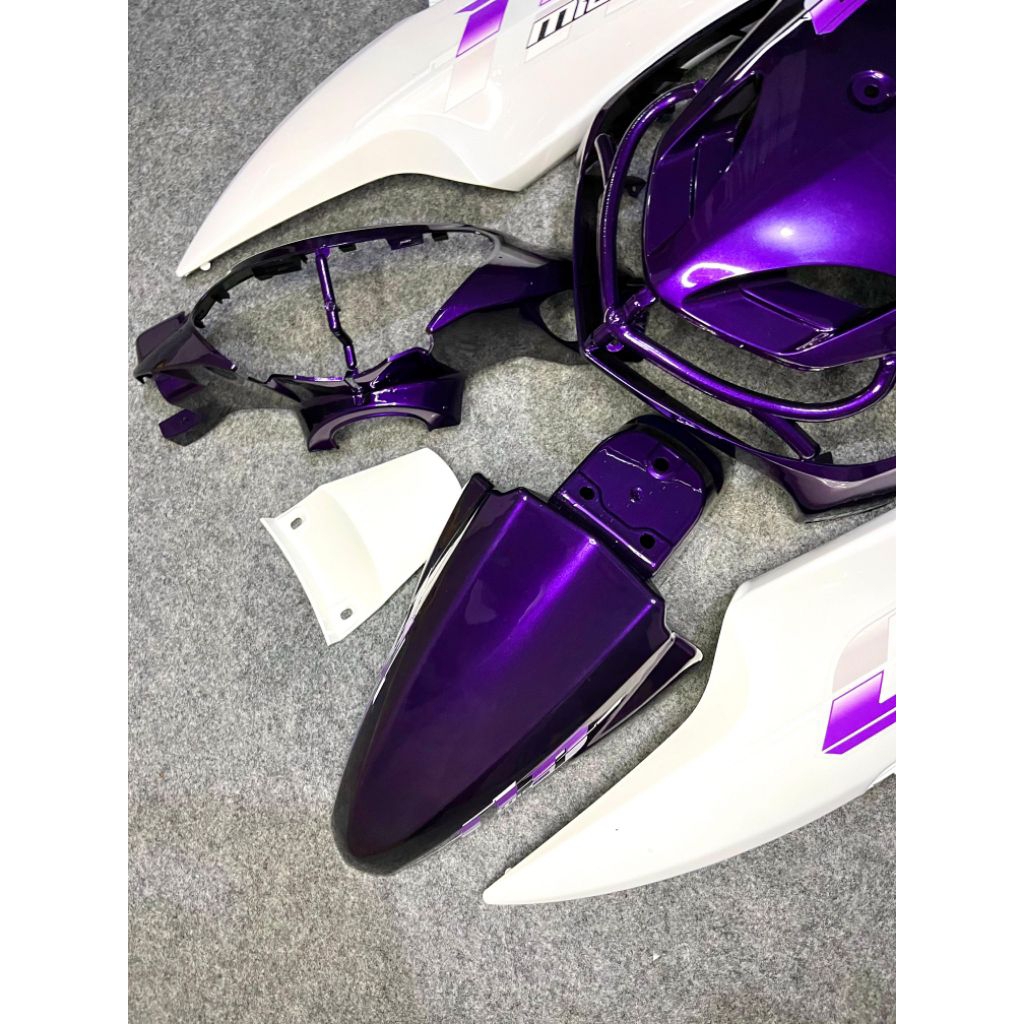 cover full body halus Yamaha mio smile warna ungu candy body putih plus striping vietnam Transparan