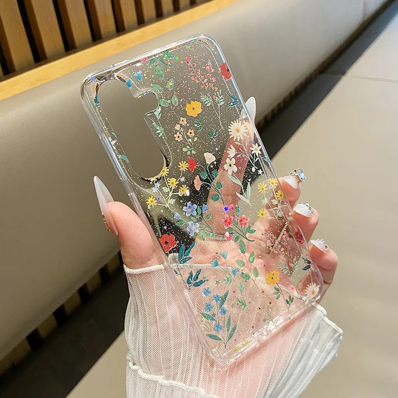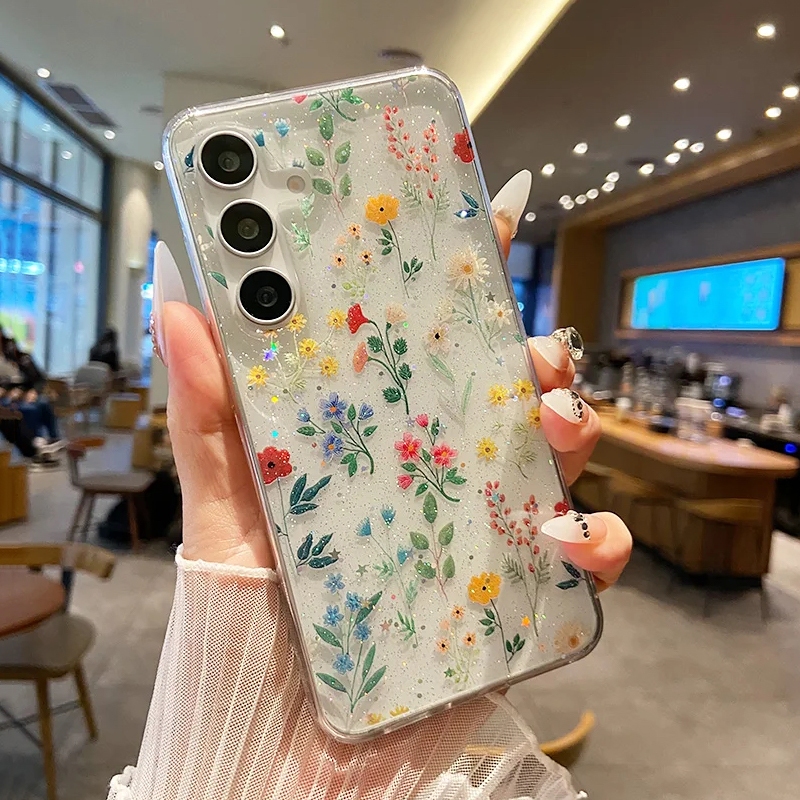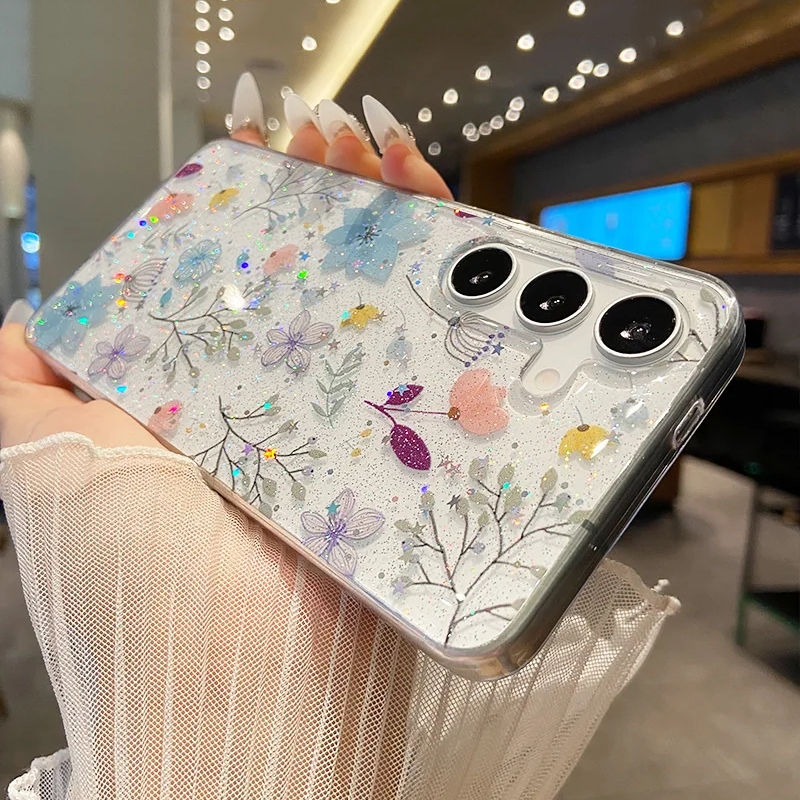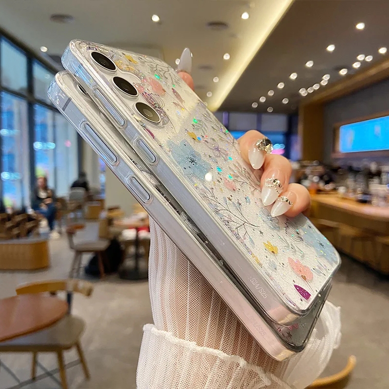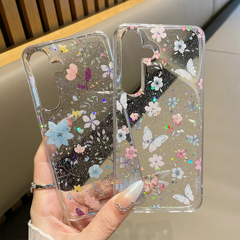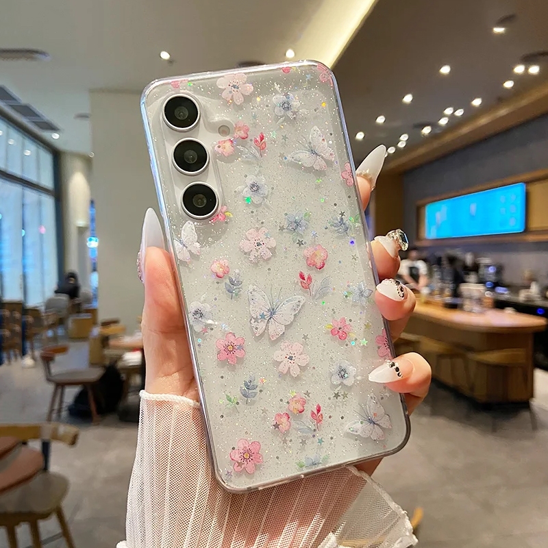 [Star] Fashion Glitter Bunga Kupu-kupu Epoxy Soft Transparent Phone Case For Samsung Galaxy A56 A55 A54 A53 A36 A35 A17