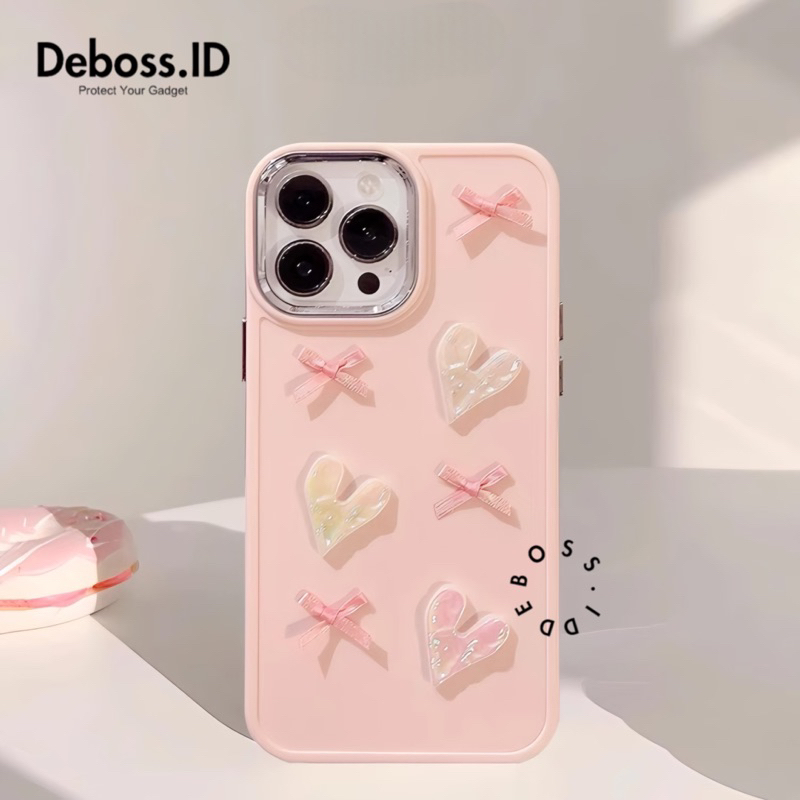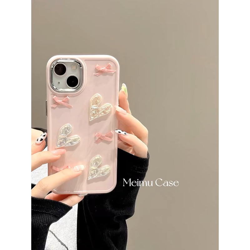 [Star] PINK LOVELY Heart Ribbon SoftCase Ready For IPH 11/12/13/14/15ProMax