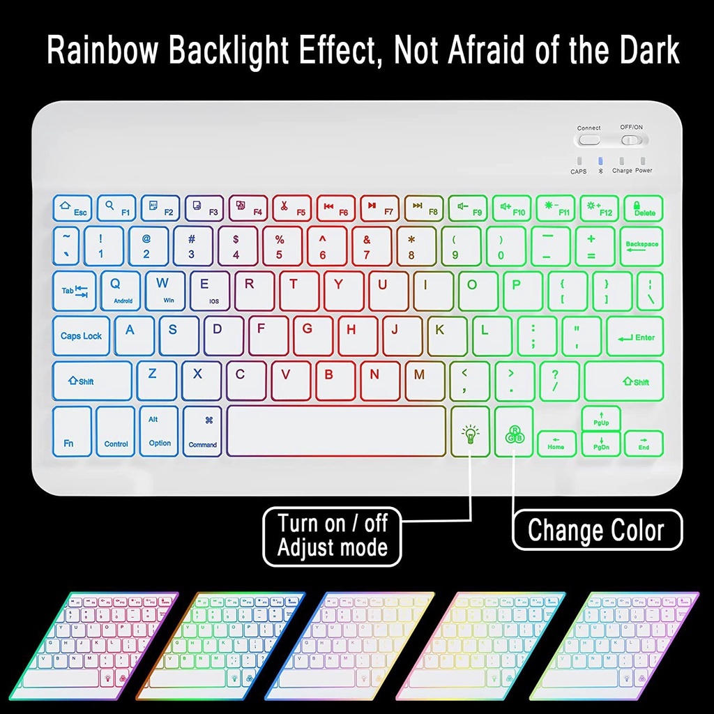 10 INCH BACKLIT WIRELESS KEYBOARD AND MOUSE LED COLOR BLUETOOTH KEYBOARD FOR IPAD LAPTOP ANDROID