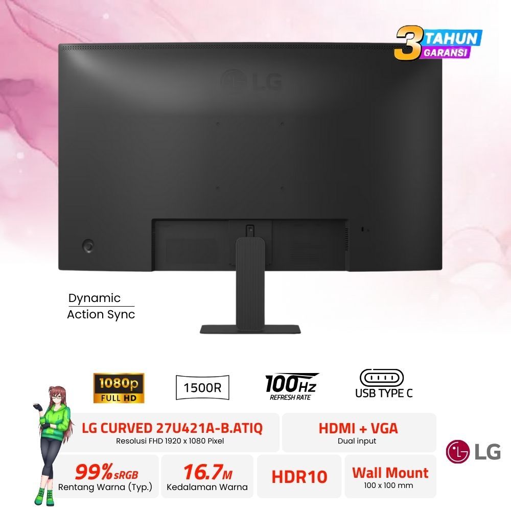 MONITOR LG 27" CURVED 27U421A-B | LG 24" CURVED 24U421A-B 100HZ FULL HD HDMI VGA BORDERLESS