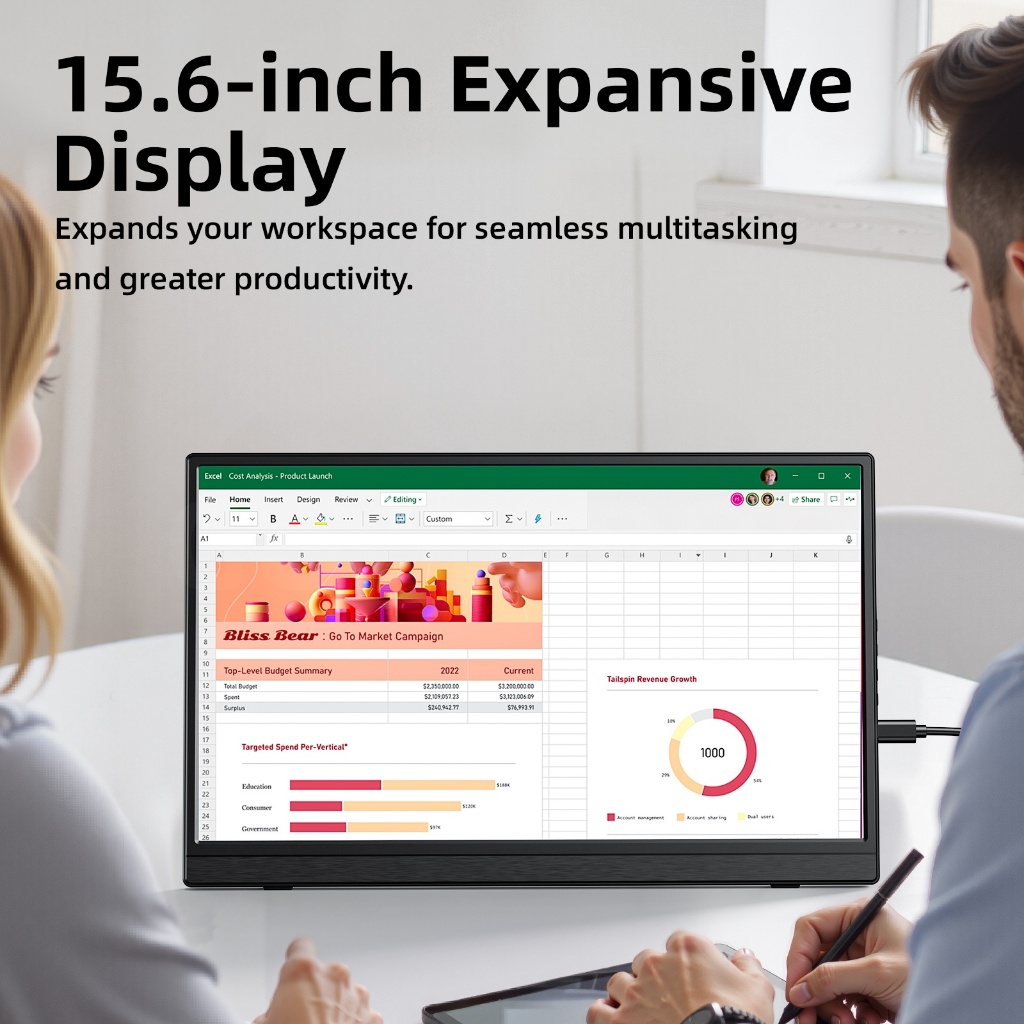 GOOJODOQ RTABLE MONITOR FOR 72 PERSENSRGB LAPTOP 15.6'' 19201080P 4K FHD 178° WIDE-ANGLE IPS DISPLAY MONITOR FOR IPAD/PC/MAC/PHONE/XBOX SWITCH/PS4