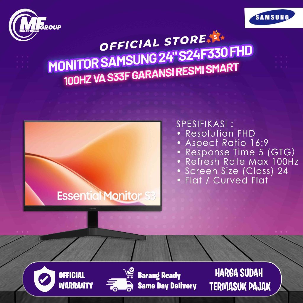 MONITOR SAMSUNG 24" S24F330 FHD 100HZ VA S33F RESMI
