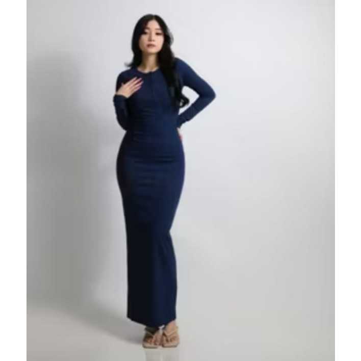 Long Dress - Slim Fit Gaun Wanita Rib Knit Casual Basic Dress rajut Press Body Korean style Bodycon