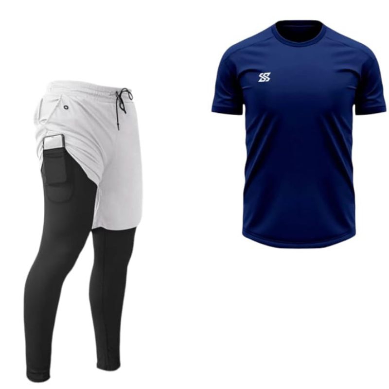 Stelan Baju Jersey Dan Celana Panjang 2in1 Badminton Gym Running Fitnes Voly