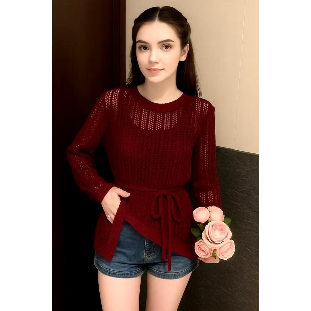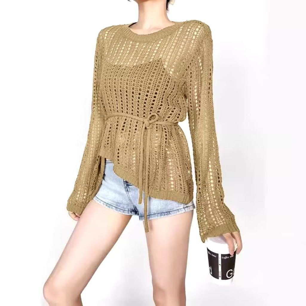 YURUMA Blouse Jaring Variasi Tali / Atasan Rajut Wanita Kekinian - 2 Ukuran