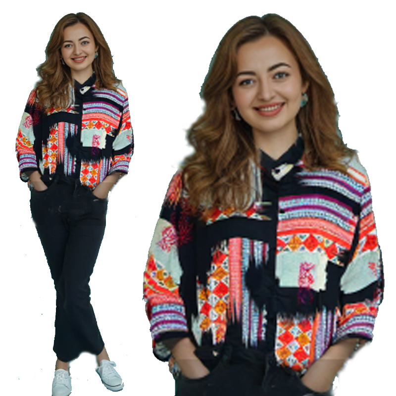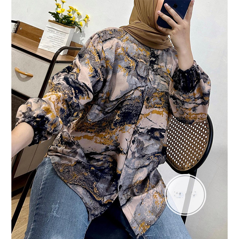 kemeja wanita jumbo motif abstrak lengan panjang 7/8 katun rayon model selegram terbaru