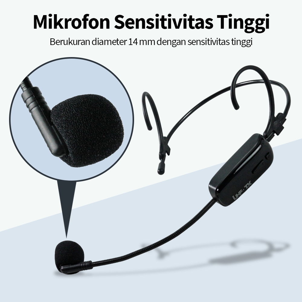 MIC IMAM DAN MUADZIN MASJID WIRELESS UHF DOBLE BANDO MICROPHONE HEADSET MINI PORTABLE TOUR GUIDE