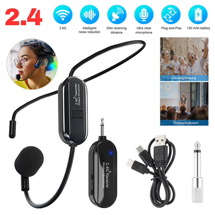 BERGARANSI TAFFSTUDIO MIK MICROPHONE WIRELESS BANDO IMAM MESJID HEADSET 2.4 GHZ WITH RECEIVER