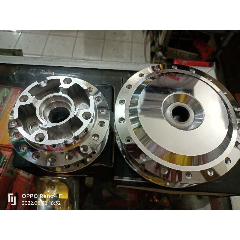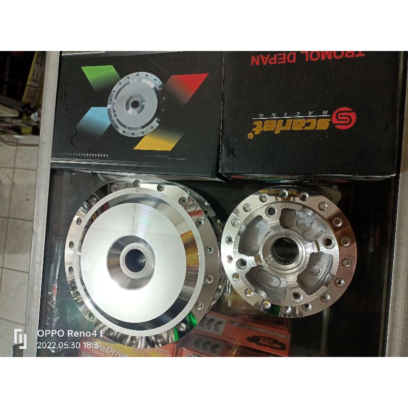 TROMOL MOTOR METIC HONDA VARIO 125OLD/TROMOL VARIO150 OLD,HUB TROMOL DEPAN BELAKANG MOTOR METIC HONDA VARIO 125 , MEREK SCARLET RNG ORIGINAL SEPASANG WARNA CROM BAHAN TEBAL VND