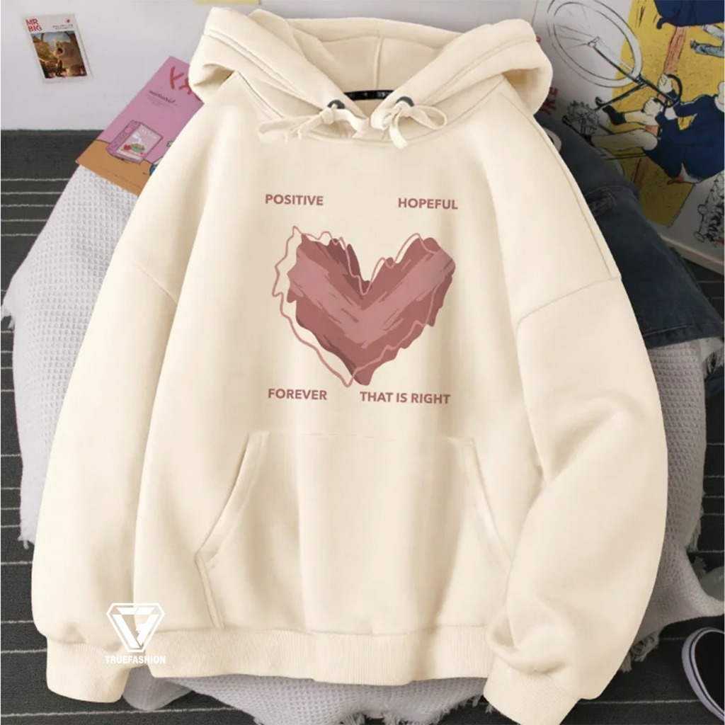 TF - HOPEFUL FOREVER LOVE Hoodie Remaja Korean Style Lucu Bahan Fleece