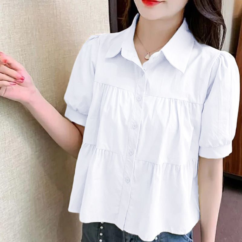 Atasan Wanita Korea /Blouse Viral/Atasan Blus Kemeja Pendek Korea