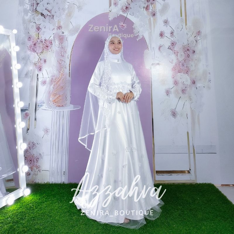 Wedding Dress Azzahra FREE VEIL dan PASMINA Gaun pernikahan putih kekinian baju akad simple
