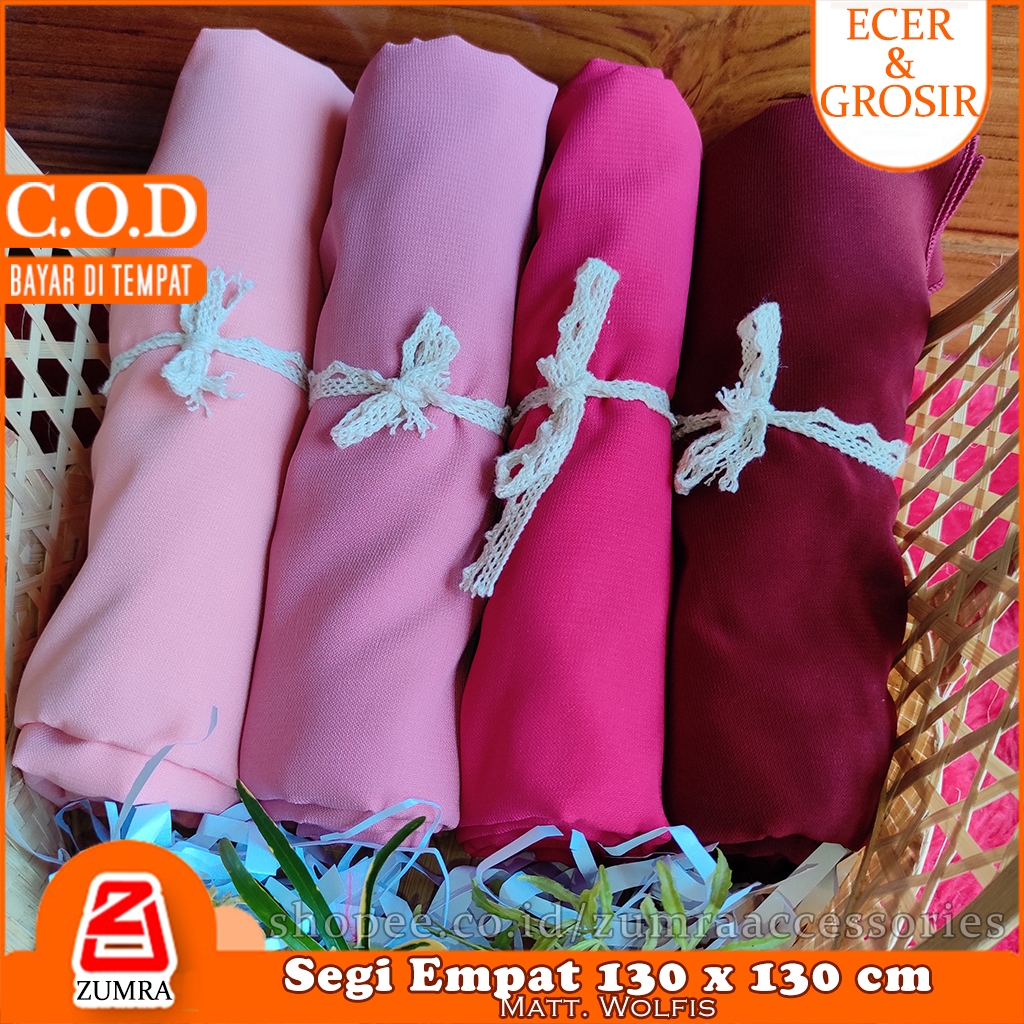Hijab Segiempat Wolfis 130 x 130 cm Jilbab Segi Empat Woolpeach Best Quality Grade A