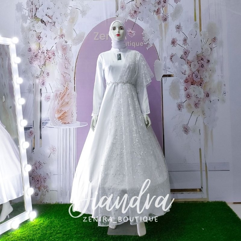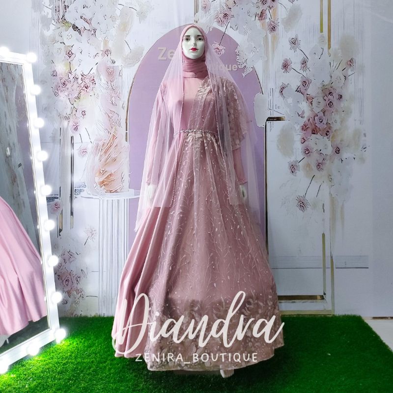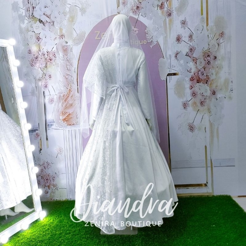 Wedding Dress Diandra Gaun Pengantin Muslimah Mewah Elegant Free Veil Premium