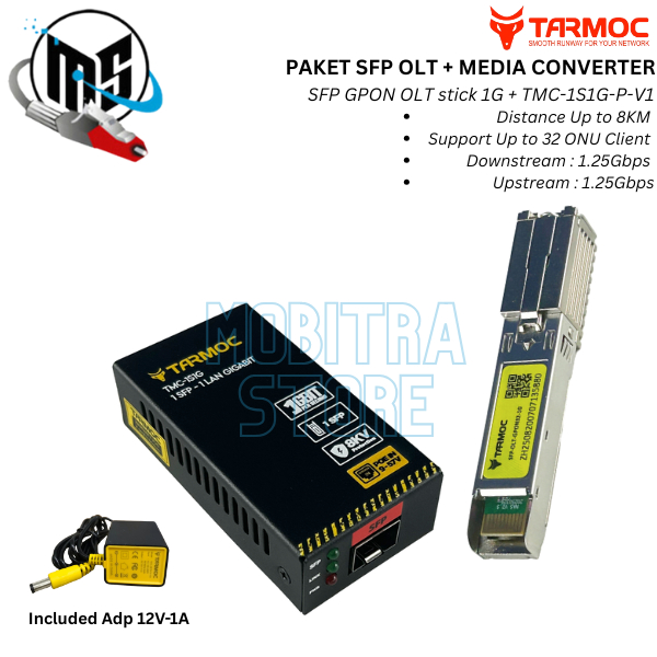 PAKET TARMOC SFP GPON OLT STICK + MEDIA CONVERTER 1 SFP 1 LAN GIGABIT POE IN 9-57V | SFP-OLT-GPON32-1G + TMC-1S1G-P-V1