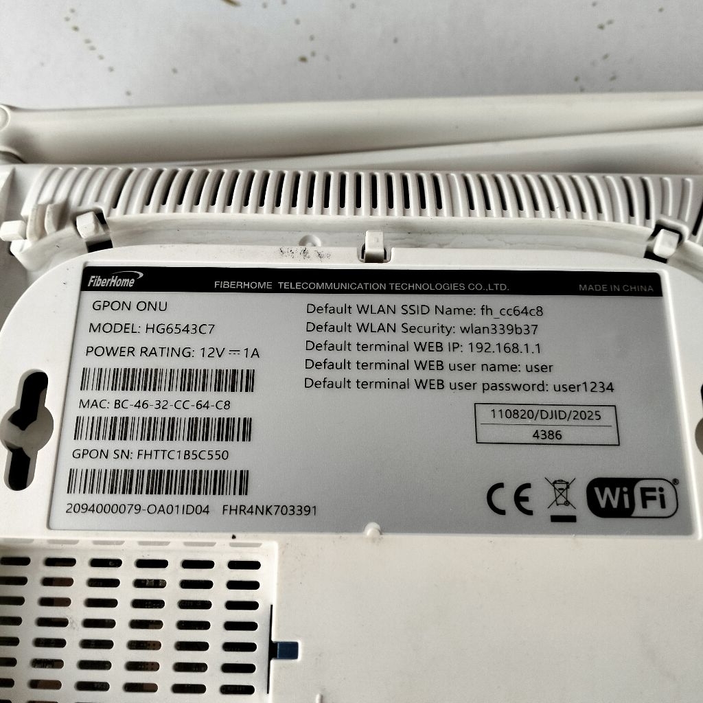 GPON ONU HG6543C7 PORT BIRU + ADAPTOR ORI FIBERHOME ( SECOND )