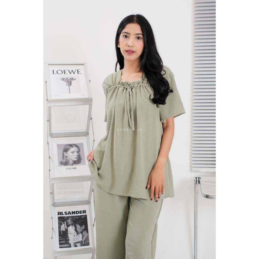 One Set Fuji Lengan Pendek Crinkle Airflow Setelan Wanita Homewear Kekinian