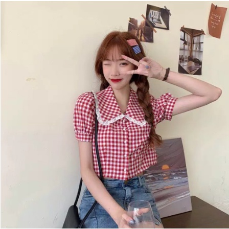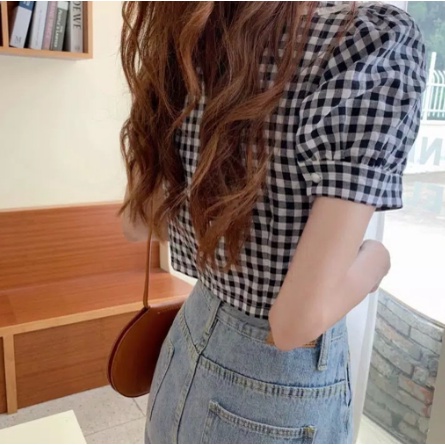 Korean Square Collar Crop Top 1214/baju atasan wanita XS-XL