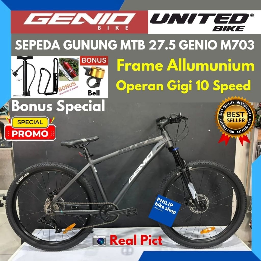 Sepeda Gunung 27.5 MTB Genio M703 Frame Allumunium 10 Speed Terbaru