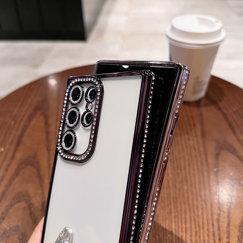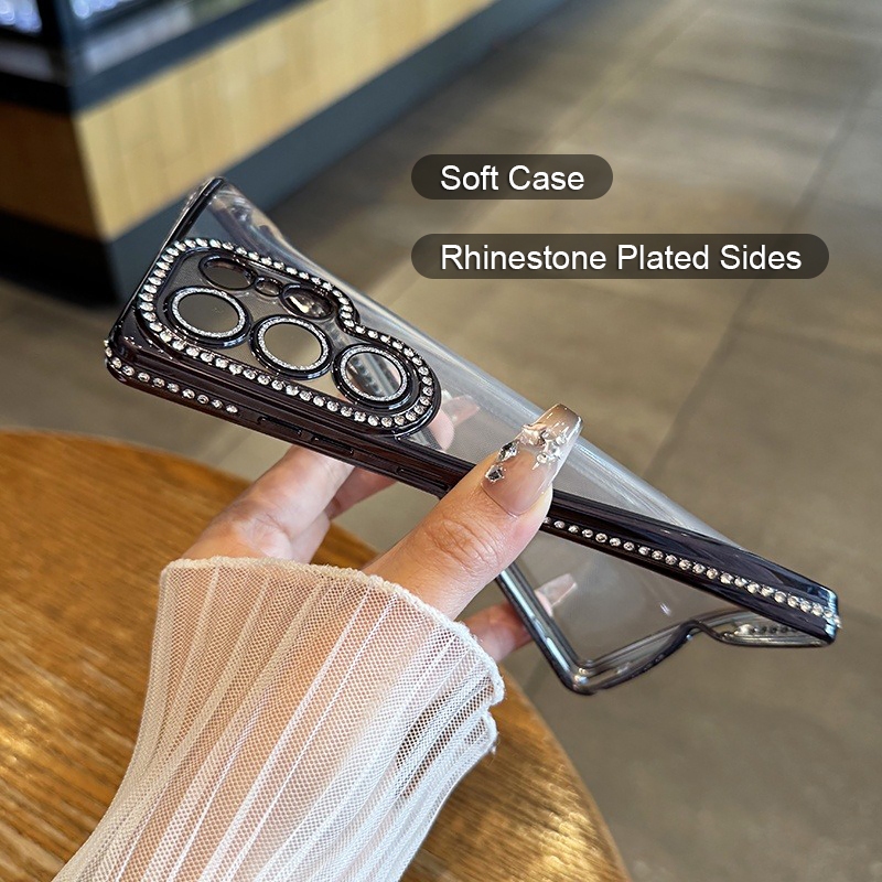 [Star] Rhinestone dimond Plating Side Transparent Soft Phone Case With Glitter Lens Films For Samsung Galaxy S25 Ultra