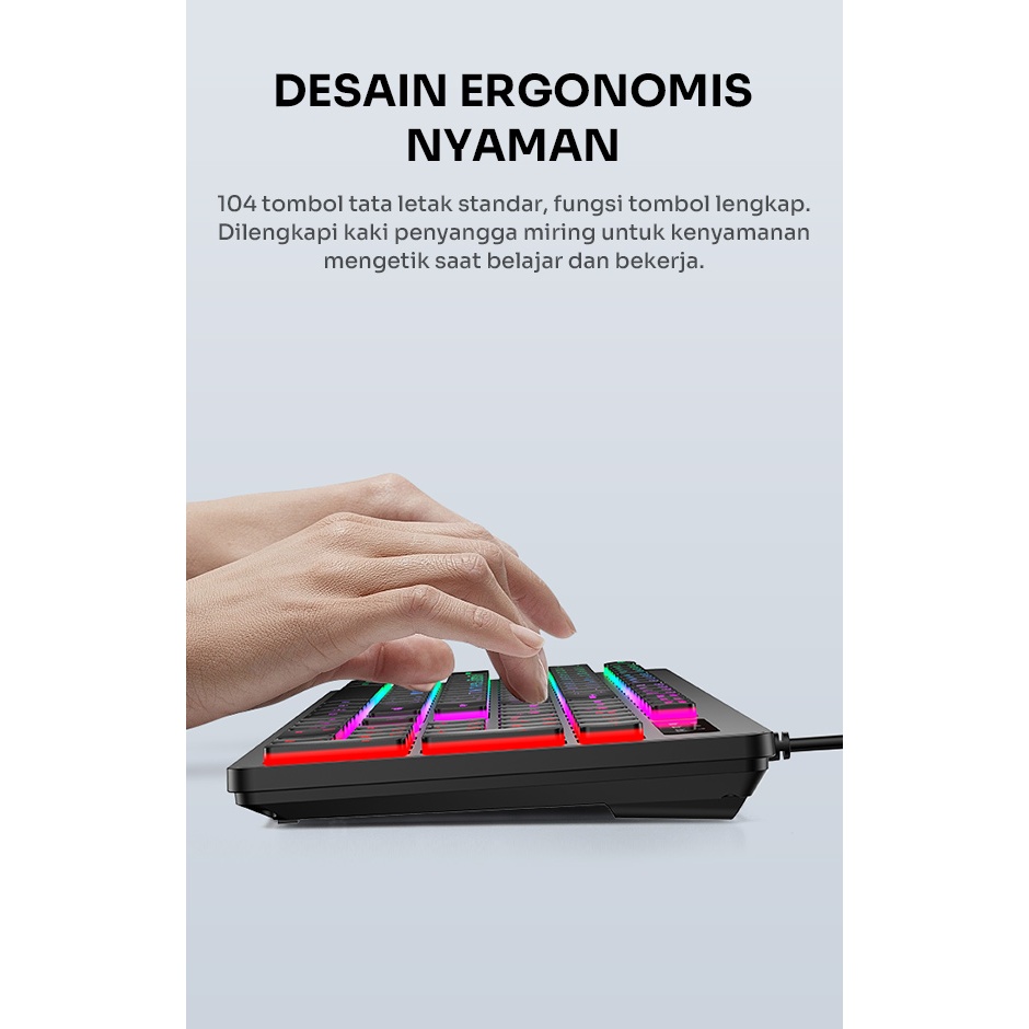 ROBOT RK40 KEYBOARD KABEL BACKLIT 7 WARNA ULTRA TIPIS RGB KEYBOARD KANTOR SENYAP ERGONOMIS