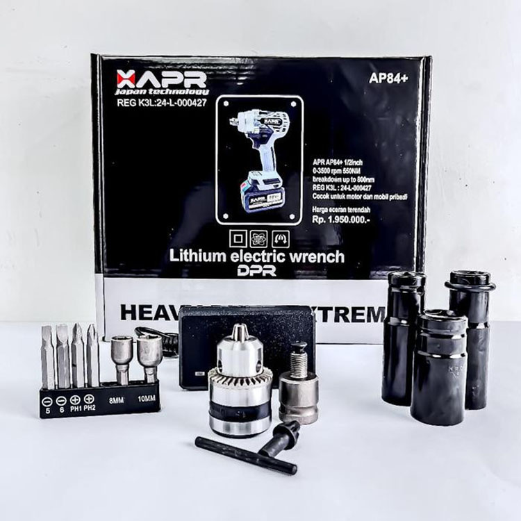 APR impact wrench type AP84+ 550nm baterai 88v standart fullset accecoris lxt 10cell - AP84+ 2024
