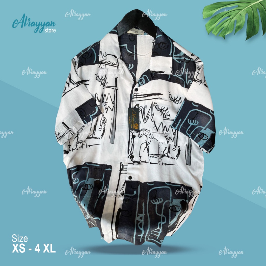Alrayyan Store - Kemeja Hawaii Rayon Harera Lengan Pendek Pria Wanita Baju Motif Full Print Jumbo Unisex