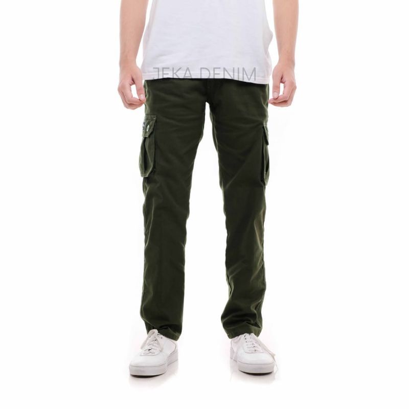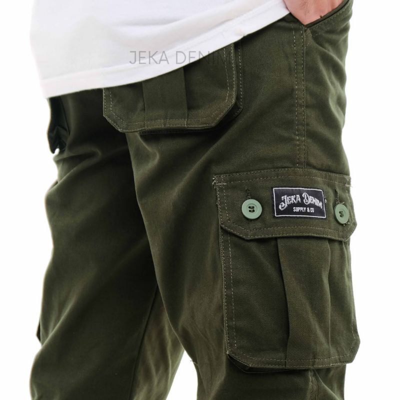 JekaDenim - Celana Cargo Panjang Pria Green Army