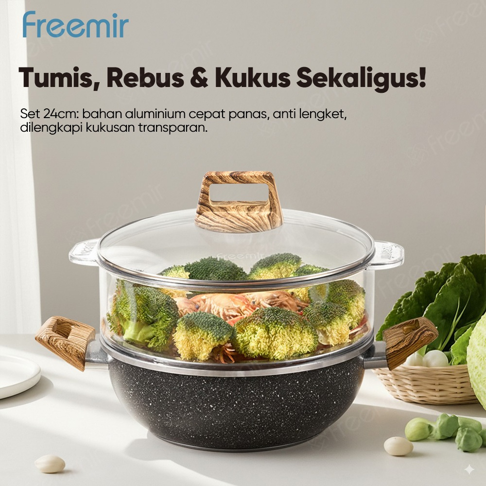 freemir Wajan Panci Kuping Kukus Granite Hitam Lebar24cm Tinggi 10cm Serbaguna Anti Lengket