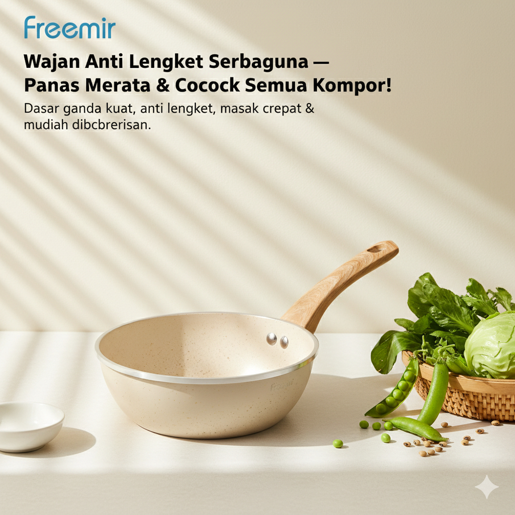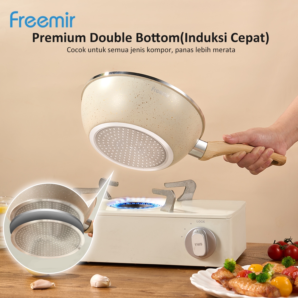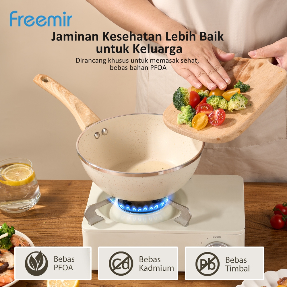 freemir Sauce Pan Beige Series 20cm Induksi Bottom Wajan Anti Lengket Serbaguna Foodgrade