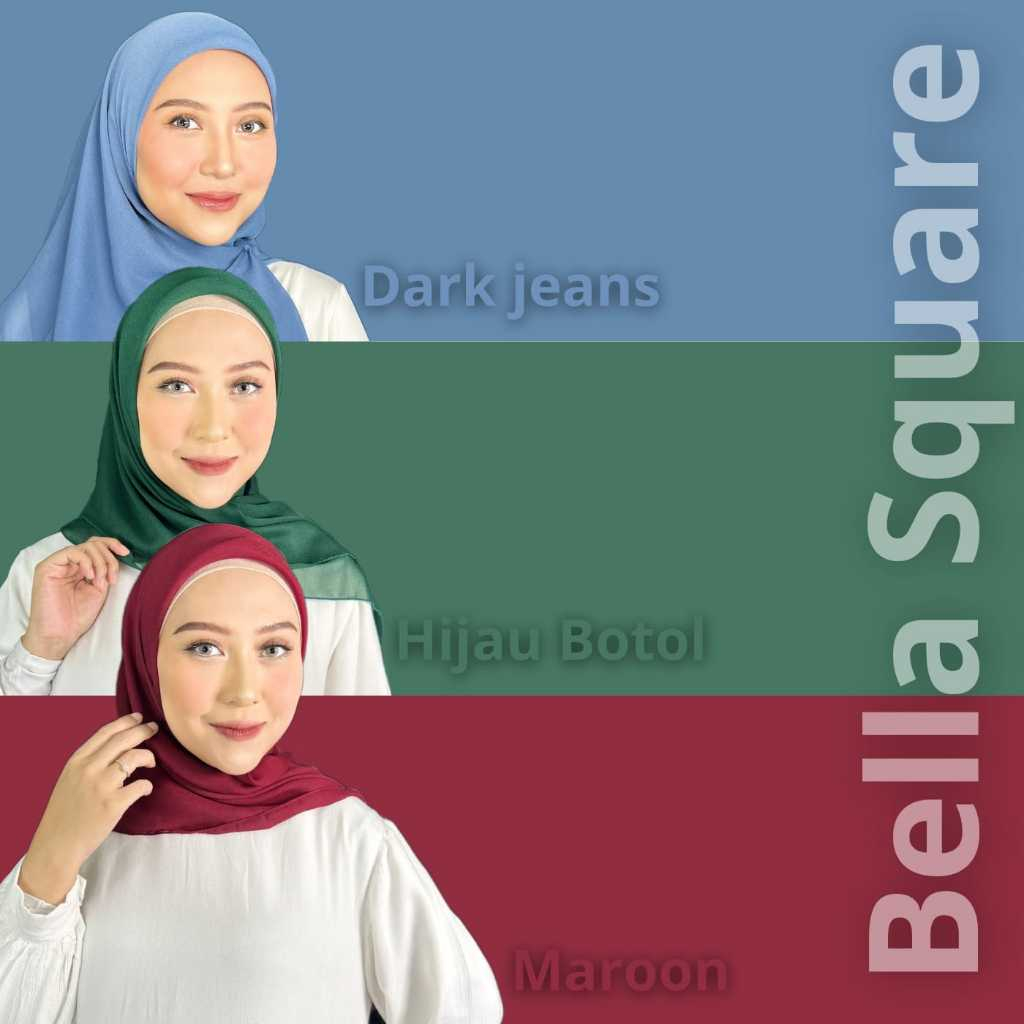 Bella Square Kerudung Segiempat los Jahit Neci Bahan Premium lycotton Ukuran 110x110cm..