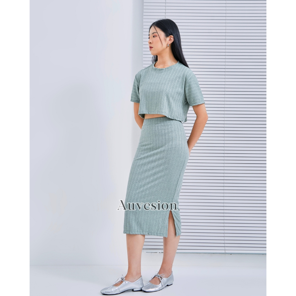 AUVESION Pomelo Slit Knit One Set Rok Bodycon 4471 | Setelan Wanita Knitted Set 1511