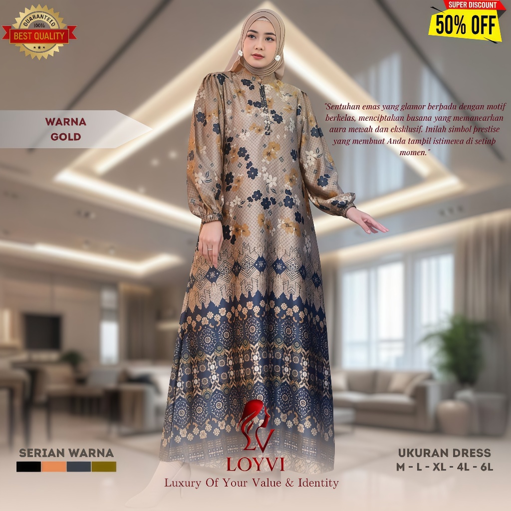 Gamis Premium Motif Mewah Terbaru-Bahan Armany Silk Brown Printing-Fashion Muslim-Mecca Dress