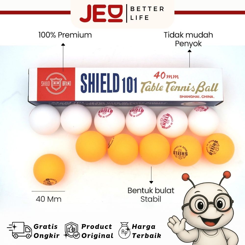 Bola pingpong / Bola tenis meja blue shield 101 isi 6 pcs + Bat Pingpong Tenis Meja Olahraga Pingpong