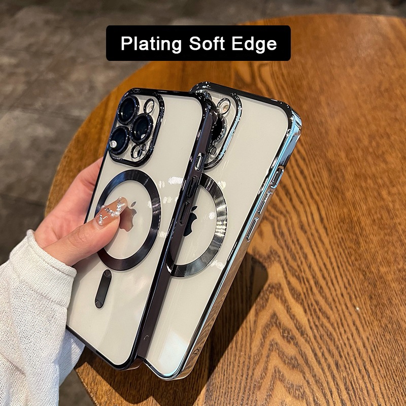[Star] With Lens Films MagSafe Magnetic Laser Plating Soft Transparent Phone Case For iPhone 16 15 14 Pro Max Plus 13 12
